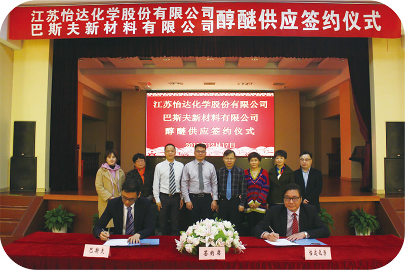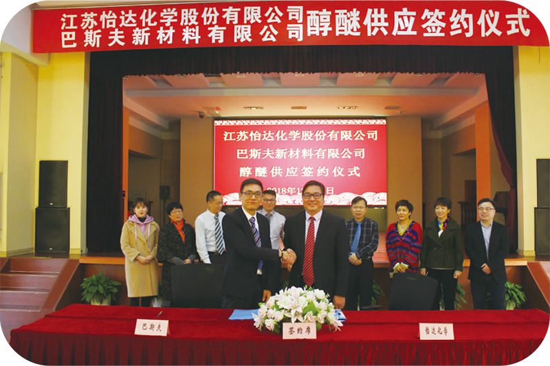 2018年12月18日,公司與巴斯夫新材料有限公司成功簽署了醇醚供應(yīng)合約。
