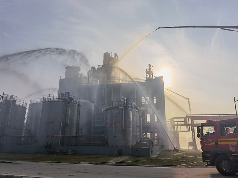 公司董事長劉準現(xiàn)場組織協(xié)調(diào),各救援人員分工明確、配合密切,全過程演示了報警接警、啟動預案、聯(lián)動響應等場景,泰興市經(jīng)濟開發(fā)區(qū)應急指揮中心、公安、醫(yī)療、消防、環(huán)保、電力等部門參與聯(lián)動響應,最終成功解除所有危險因素,指揮組宣布演練結(jié)束。